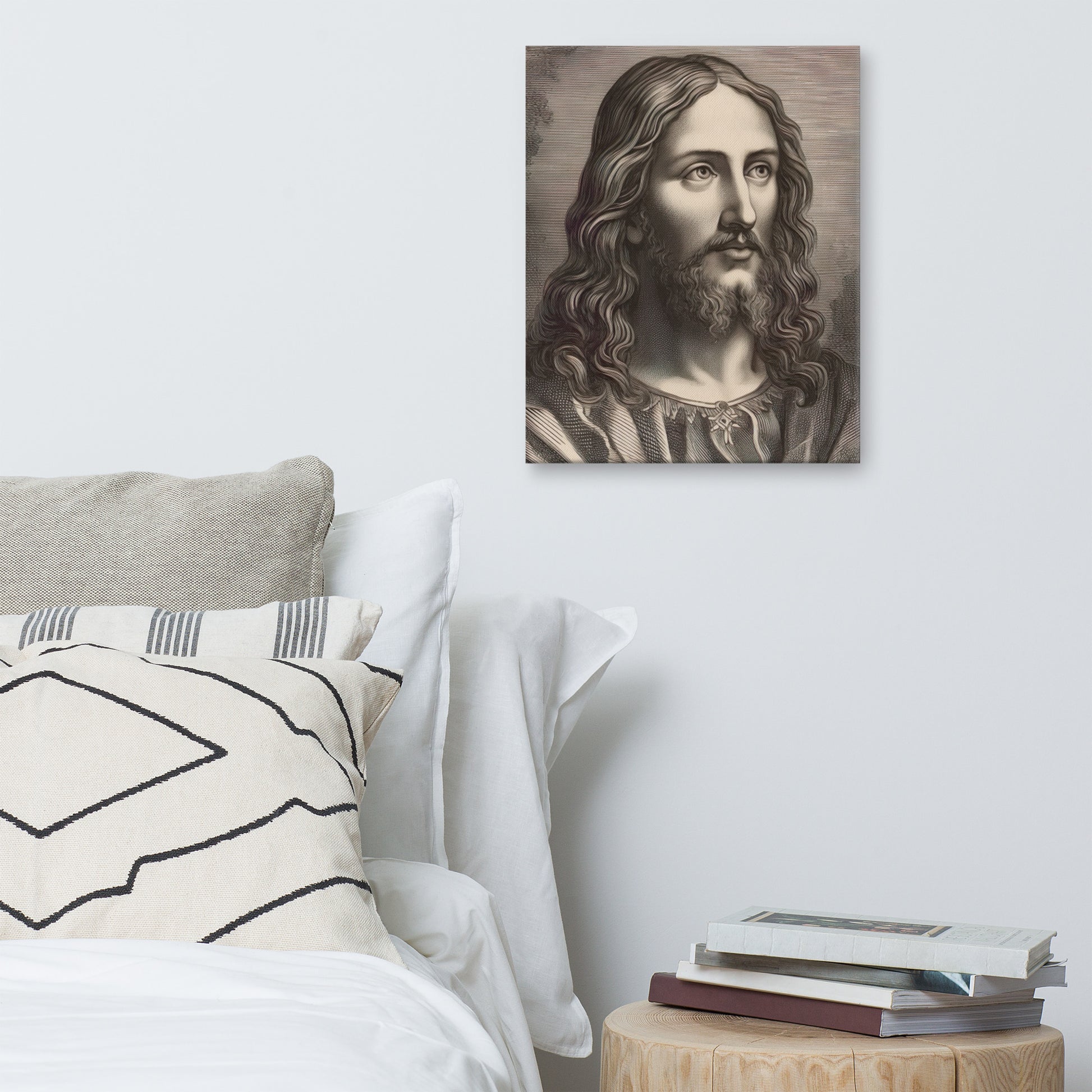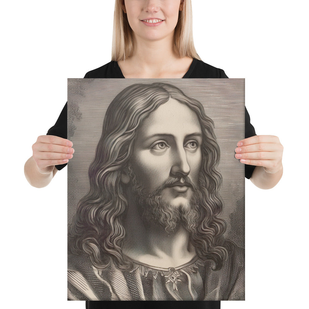 Crafted in the warm, vintage aesthetic of 17th–19th century book engravings, this piece features Jesus rendered in rich black-and-tan tones that mimic aged pages and historic etching ink. “Christ The Eternal Word” carries the scholarly, devotional feel of antique theological illustrations, with fine linework, textured shading, and a reverent classical composition.