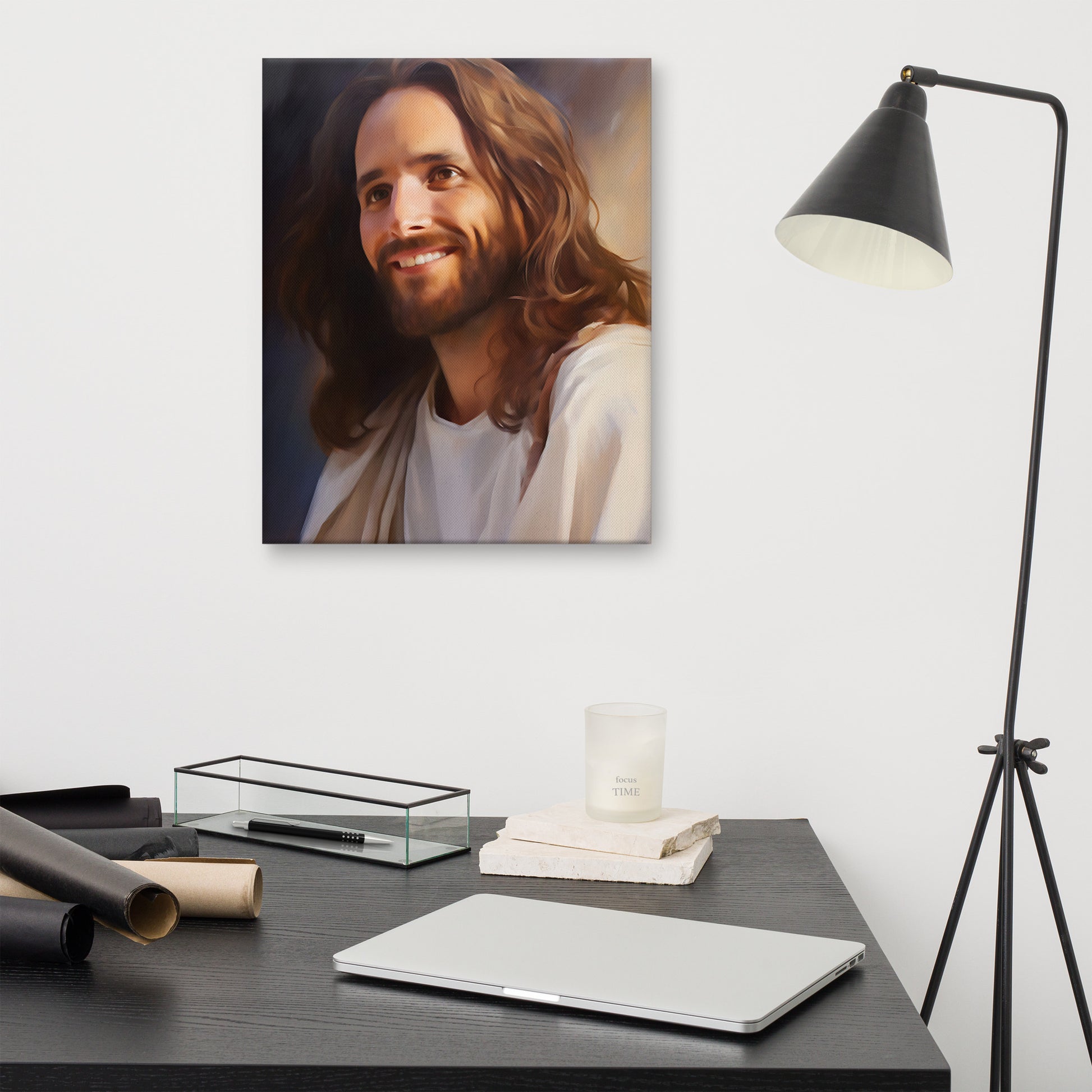 This traditional, classical-style portrait of Jesus features a warm, inviting smile that radiates compassion and gentle encouragement. “Come, Follow Me” reflects the heart of Christ’s call—an expression filled with kindness, guidance, and unwavering love.