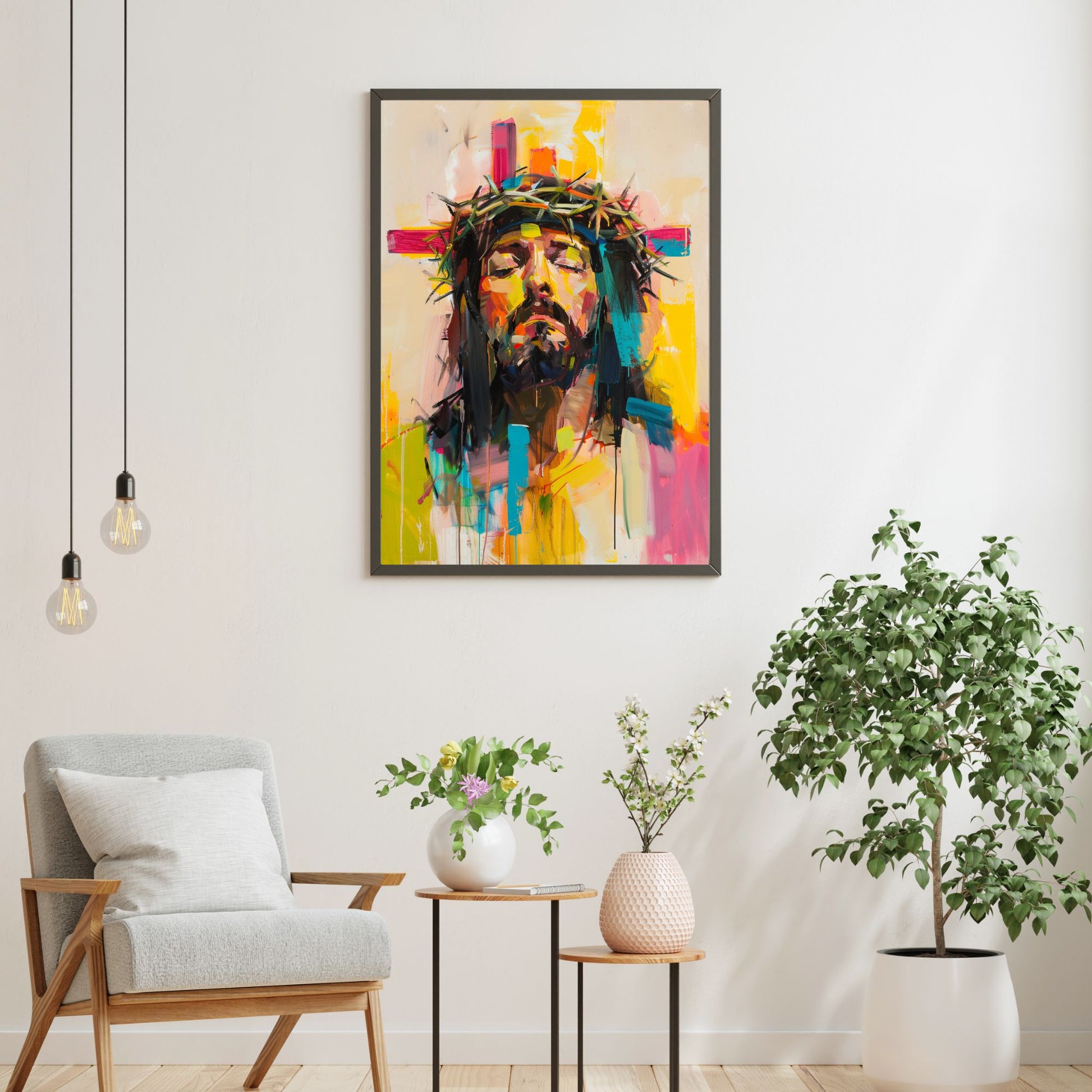 Crown Of Glory is a contemporary abstract expressionist art print that reimagines Christ crowned with thorns in vivid, layered color and bold brushwork. This powerful, modern design infuses your space with spiritual depth and artistic energy, making it a stunning focal point for homes, chapels, or sacred meditation areas.