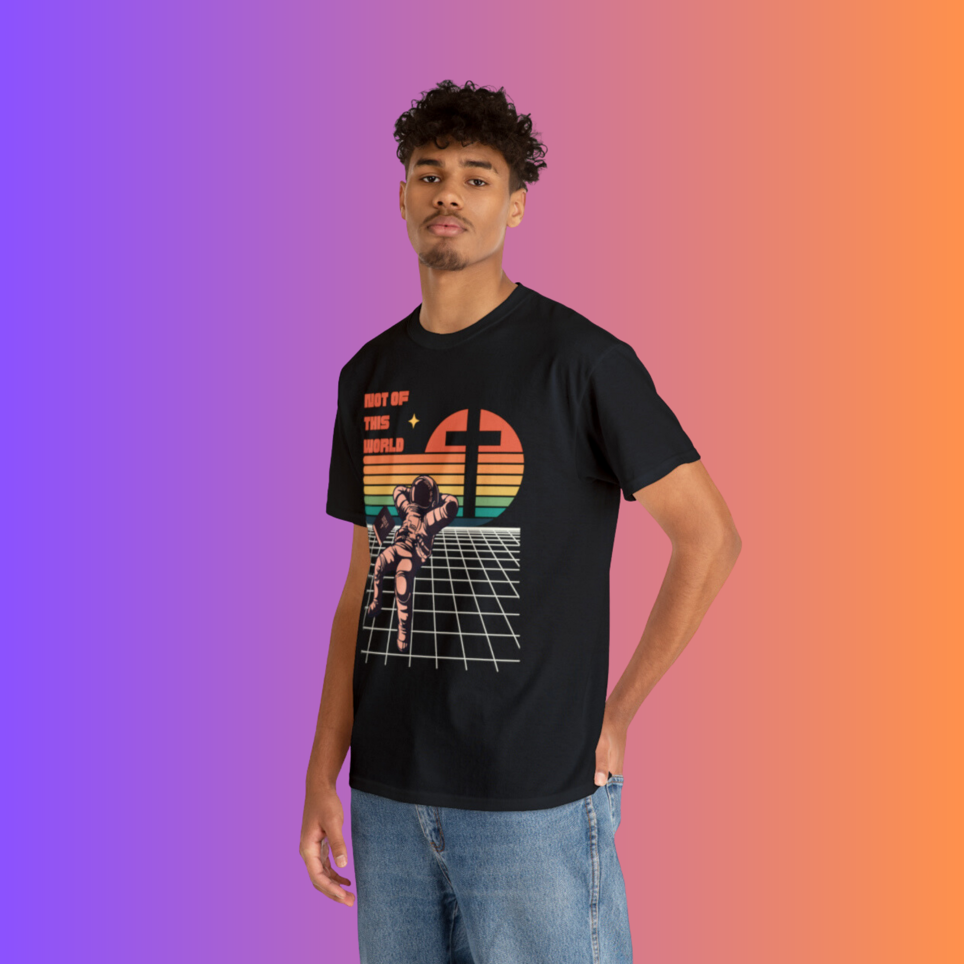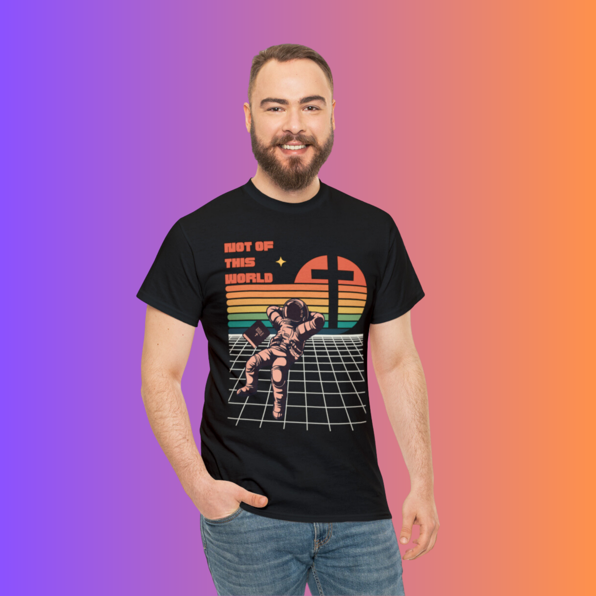 Check out our cool 80s Retro t-shirt, Not of This World. This awesome design reminds us of the words of Christ in John 15:19: