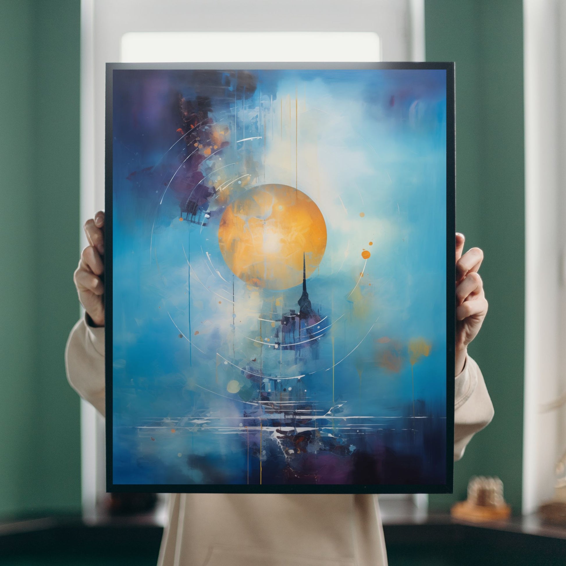 The Kingdom Of God is a Christian abstract art print featuring vivid layers of blue and gold, evoking spiritual depth and divine mystery in a luminous, modern composition. Available in multiple sizes, framed or unframed, it’s designed to bring contemporary, faith-filled inspiration to your home, office, or church.