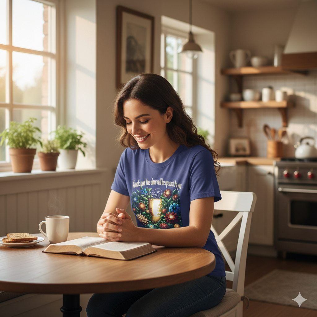 Perfect for anyone inspired by the Bible and the teachings of Christ, this shirt encourages both the wearer and onlookers to embrace the opportunities that faith opens.