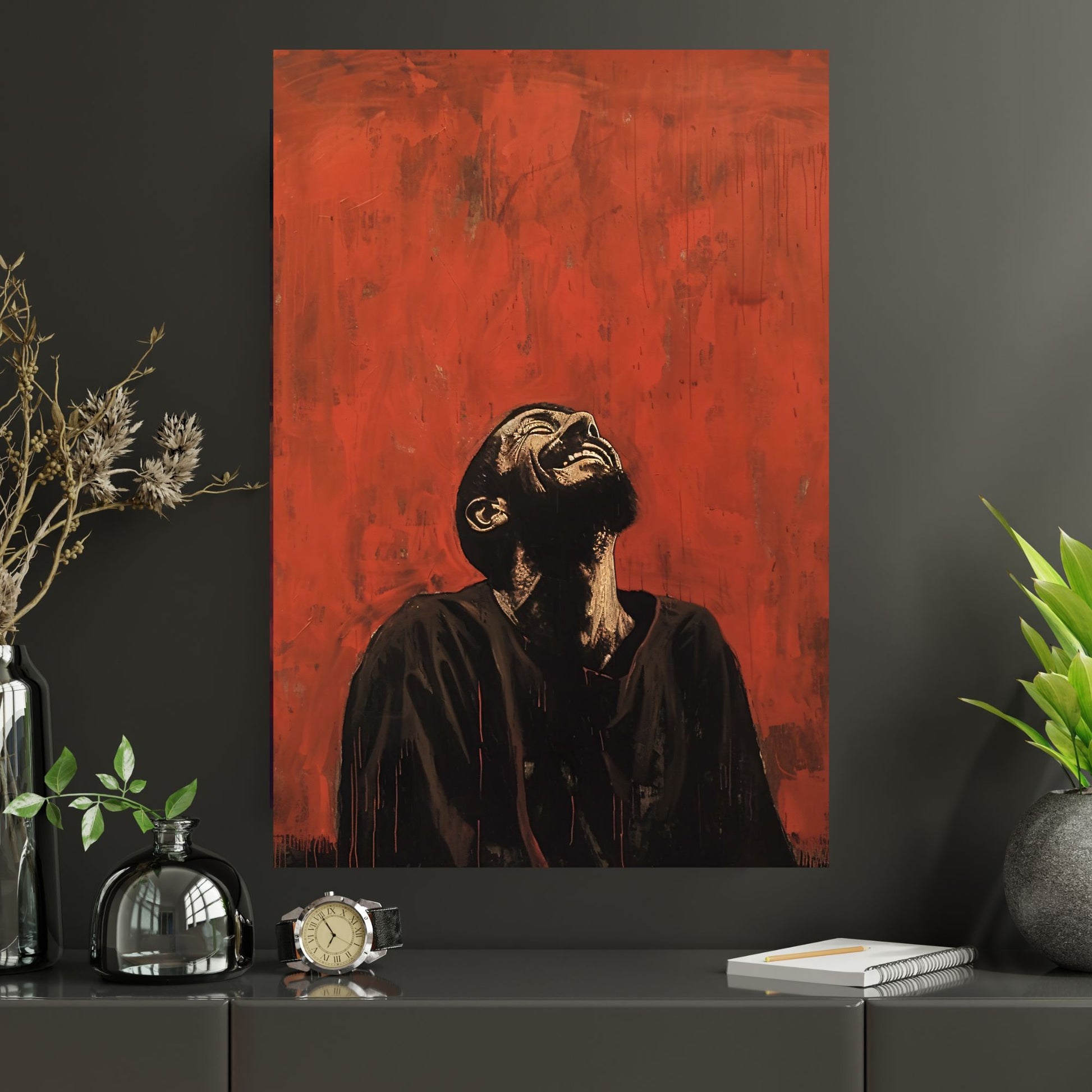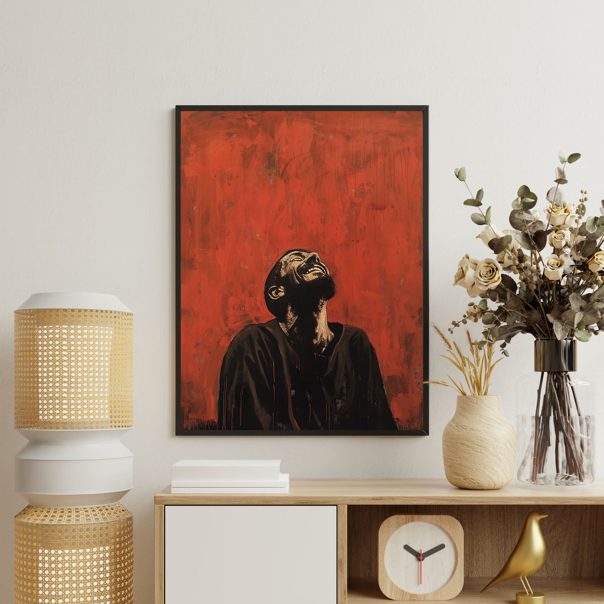 Sin Defeated is a powerful art print depicting Saint Francis Of Assisi in raw, expressive style with a bold red backdrop that symbolizes triumph over sin and spiritual transformation. Available in multiple sizes, framed or unframed, it’s designed to bring striking, faith-filled inspiration to your home, office, or church.